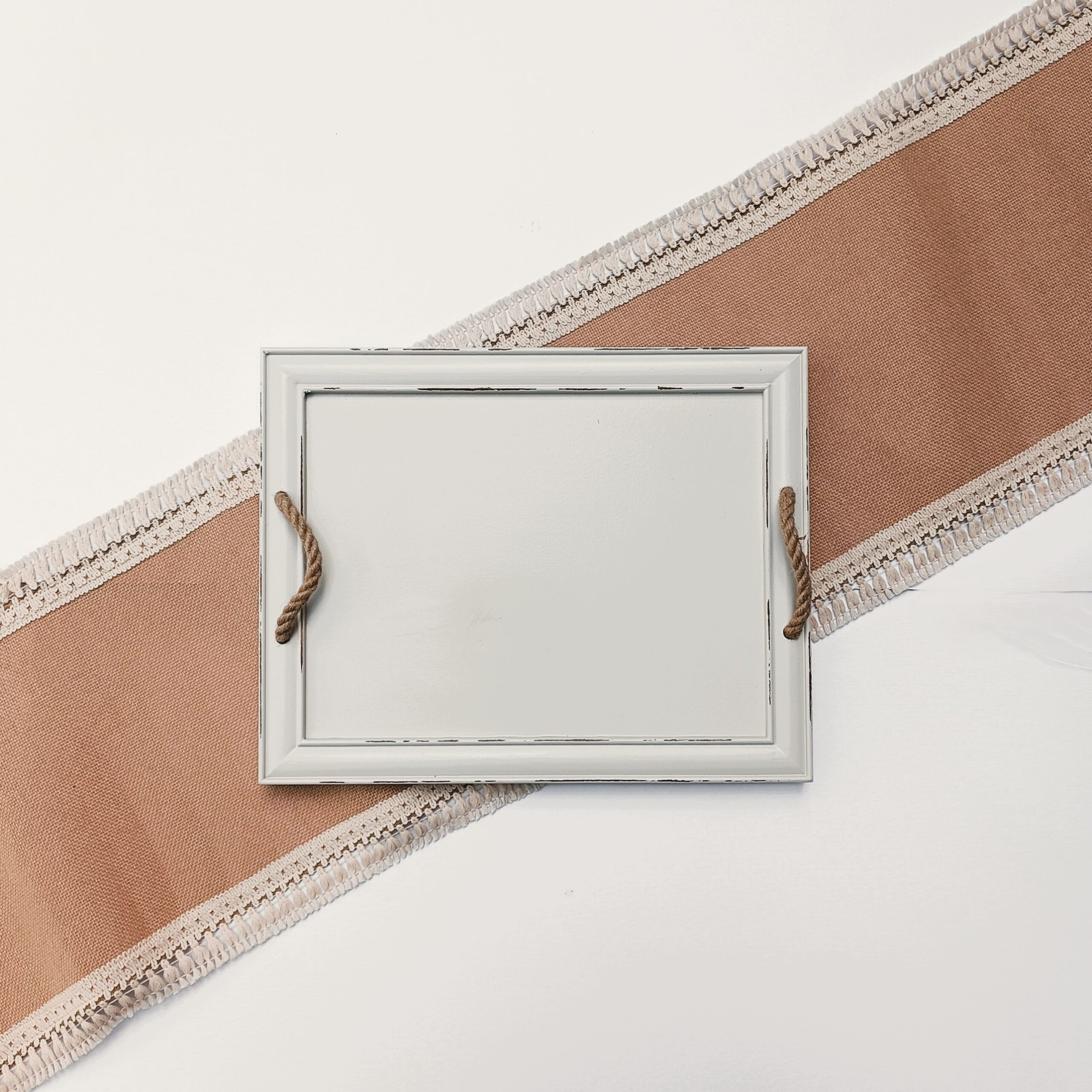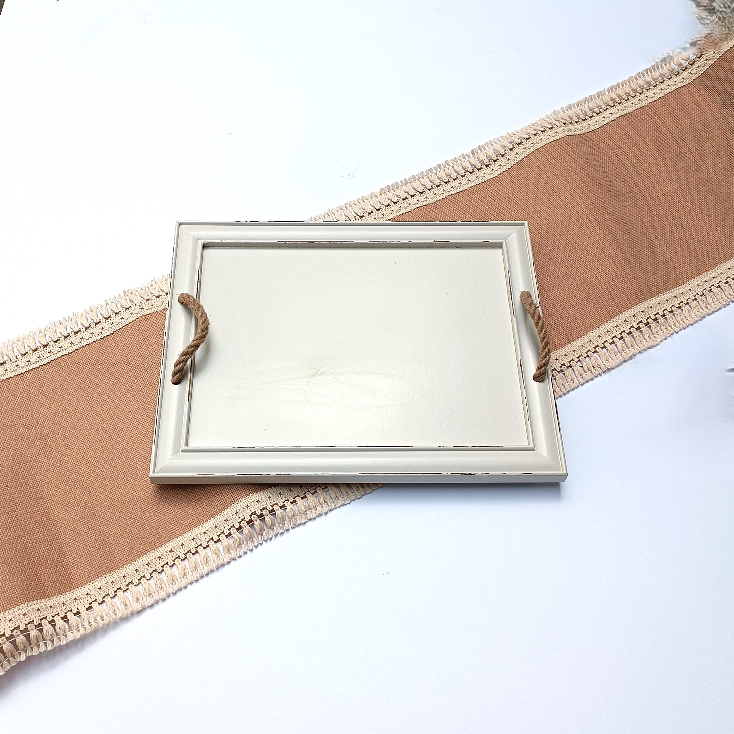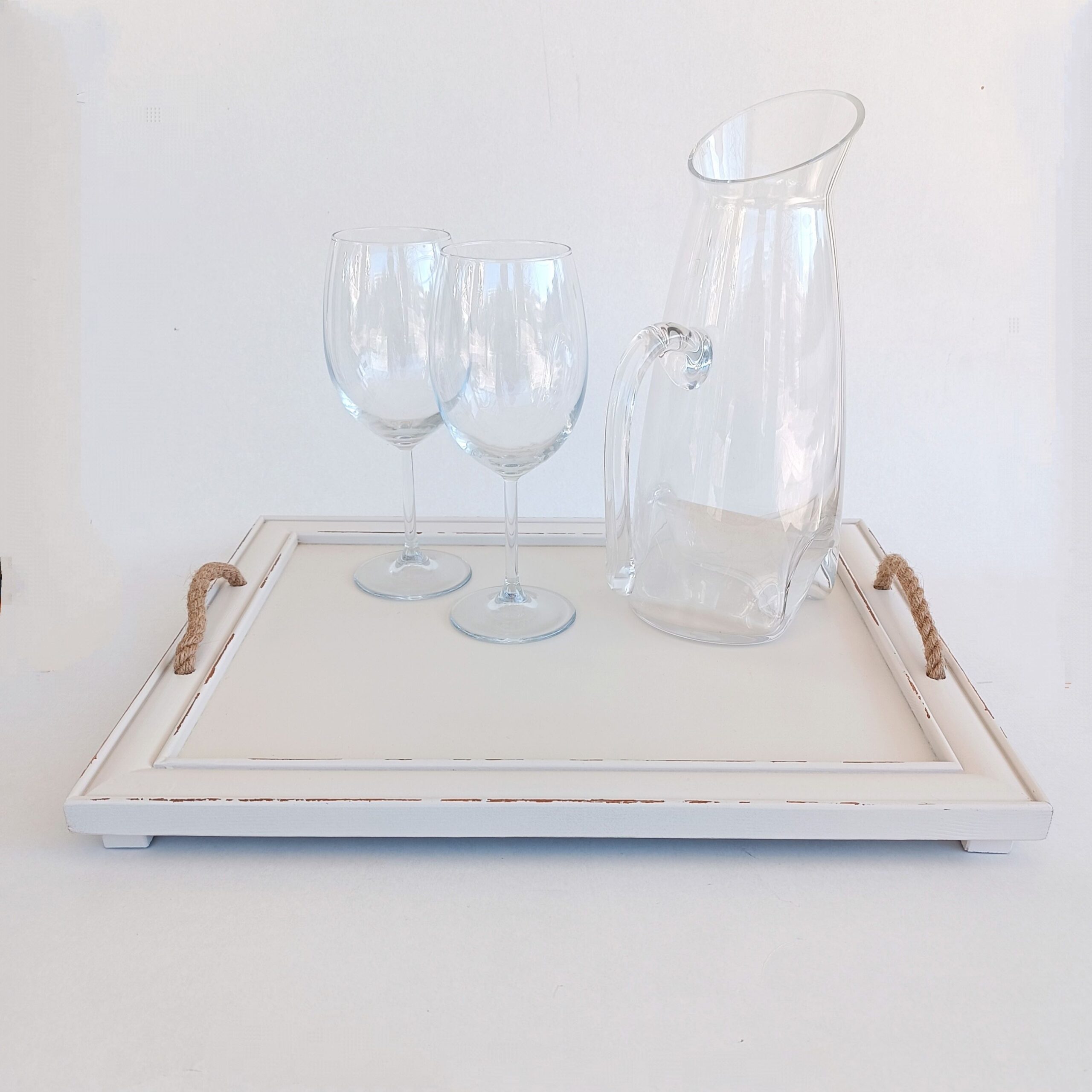Ξύλινος δίσκος από μασίφ ξύλο πεύκου, κατάλληλο για χρήση ως διακοσμητικός ή σερβιρίσματος δίσκος. Διαθέτει λαβές από φυσικό σκοινί jute για εύκολη μεταφορά και rustic αισθητική.
